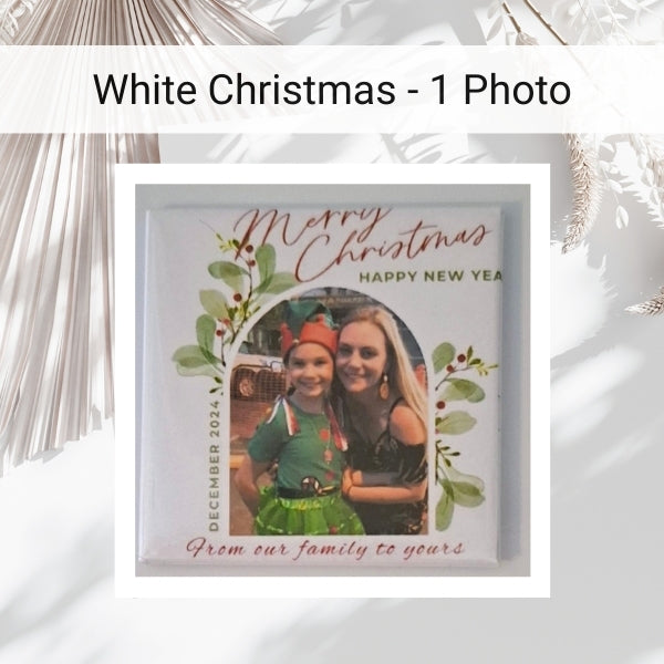 These stylish Christmas magnets offer a unique and useful way to send holiday greetings to your family and friends. Choose to display 1, 2, or 3 photos on each magnet, and we will transform your treasured images into charming Christmas mementos crafted individually for you.